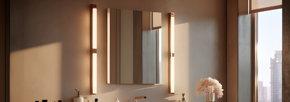 Miroir infrarouge à commandes par ondes avec deux barres LED intégrées (rond)